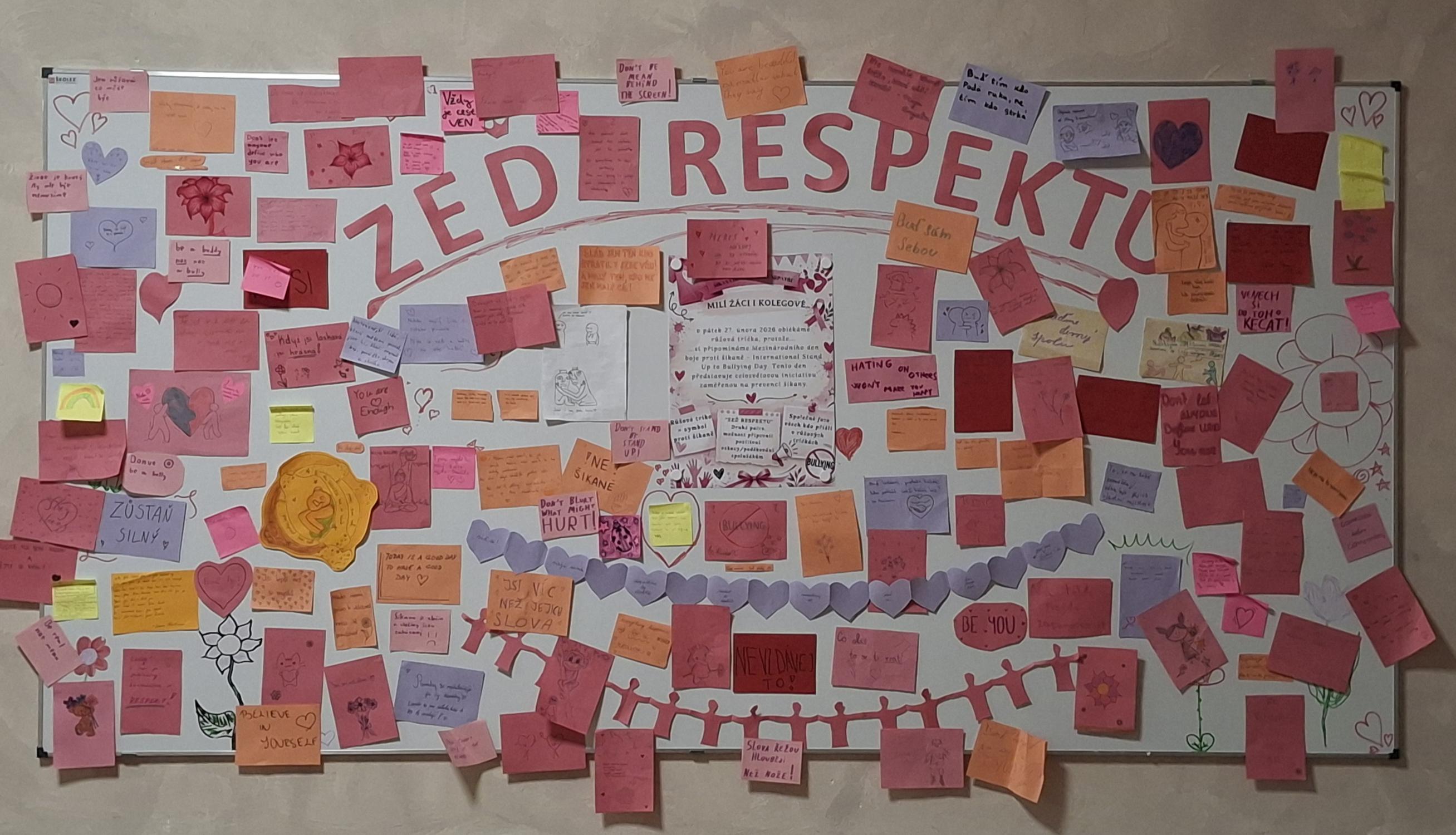 Připojte se k nám – oblékněte v tento den růžové tričko, sdílejte myšlenku respektu a dejte svému okolí najevo, že šikana nemá místo v naší škole.